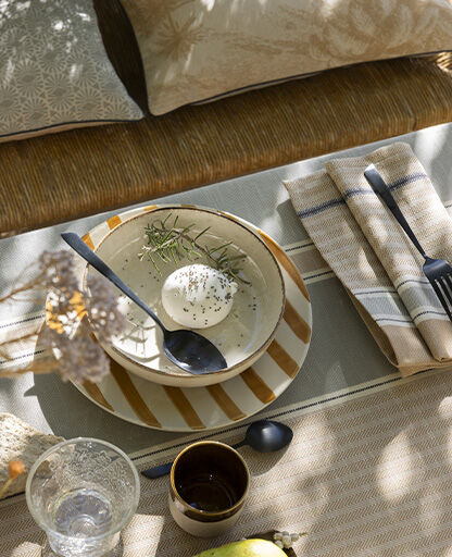 Une collection qui se décline dans toute la maison, de la table à l'office, en passant par la chambre et la plage.