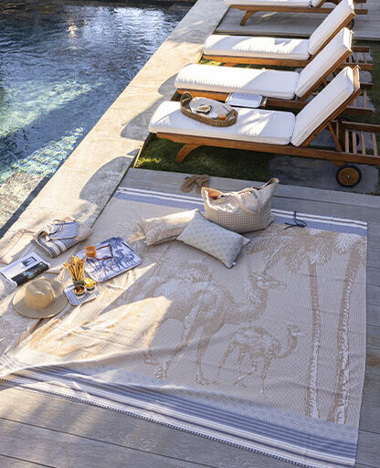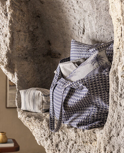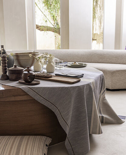 Sous le soleil du Sud, la chaleur enveloppe les maisons en tadelakt et révèle la beauté simple d'un savoir-faire transmis de génération en génération. Inspirées des tentes des bergers d'Afrique du Nord, les rayures de la collection Dune célèbrent cet héritage ancestral.
